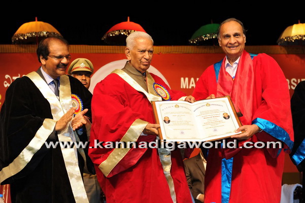 ಘಟಿಕೋತ್ಸವದಲ್ಲಿ ಪ್ರಸಿದ್ಧ ವಿಜ್ಞಾನಿ ಬೆಂಗಳೂರಿನ ಭಾರತೀಯ ವಿಜ್ಞಾನ ಸಂಸ್ಥೆಯ ವಿಶ್ರಾಂತ ನಿರ್ದೇಶಕ ಹಾಗೂ ಹೈದರಾಬಾದ್ ವಿಶ್ವದ್ಯಾನಿಲಯದ ಸ್ಕೂಲ್ ಆಫ್ ಕೆಮೆಸ್ಟ್ರಿಯ ರಾಷ್ಟ್ರೀಯ ಸಂಶೋಧನಾ ಪ್ರಾಧ್ಯಾಪಕ ಪ್ರೊ| ಗೋವರ್ಧನ ಮೆಹ್ತಾ, ಮುಂಬಯಿಯ ಆಲ್ಕಾರ್ಗೋ ಲಾಜಿಸ್ಟಿಕ್ ಲಿ.ನ ವ್ಯವಸ್ಥಾಪಕ ನಿರ್ದೇಶಕ ಕೈಗಾರಿಕೋದ್ಯಮಿ ಶಶಿ ಕಿರಣ್ ಶೆಟ್ಟಿ ಹಾಗೂ ಎನ್ಯುಎಸ್ ಇಂಡಿಯಾ ರಿಸರ್ಚ್ ಇನಿಶಿಯೇಟಿವ್ ನ್ಯಾಶನಲ್ ಯುನಿವರ್ಸಿಟಿ ಆಫ್ ಸಿಂಗಾಪುರ ಇಲ್ಲನ ಶಿಕ್ಷಣ ತಜ್ಞ ಪ್ರೊ| ಬಿ.ವಿ.ಆರ್. ಚೌಧರಿ ಅವರಿಗೆ ರಾಜ್ಯಪಾಲರು ಗೌರವ ಡಾಕ್ಟರೇಟ್ ಪ್ರದಾನ ಮಾಡಿದರು.
