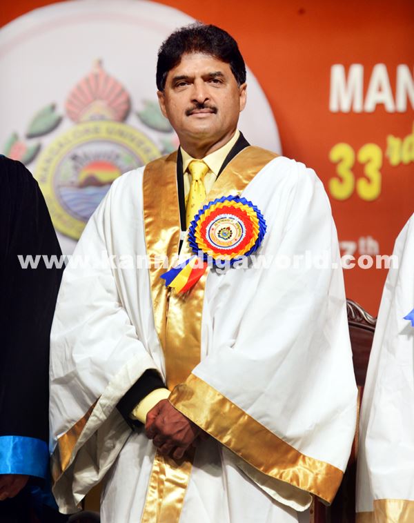 ಉಳ್ಳಾಲ: ಮಂಗಳೂರು ವಿಶ್ವವಿದ್ಯಾಲಯದ 33ನೇ ಘಟಿಕೋತ್ಸವ ಬುಧವಾರ ಕೊಣಾಜೆಯಲ್ಲಿರುವ ಮಂಗಳೂರು ವಿಶ್ವವಿದ್ಯಾಲಯದ ಮಂಗಳಾ ಸಭಾಂಗಣದಲ್ಲಿ ಜರಗಿತು, ವಿ.ವಿ. ಕುಲಾಧಿಪತಿಗಳಾಗಿರುವ ಕರ್ನಾಟಕ ರಾಜ್ಯಪಾಲ ವಜೂಭಾಯಿ ರುಡಾಭಾಯಿ ವಾಲಾ ಅವರು ಅಧ್ಯಕ್ಷತೆ ವಹಿಸಿದ್ದರು.