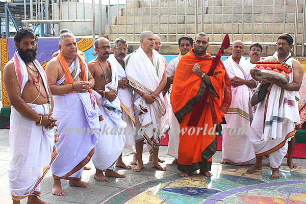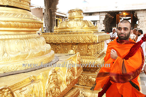 ಈ ಸಂಧರ್ಭದಲ್ಲಿ ತಿರುಮಲ ತಿರುಪತಿ ದೇವಳದ ( ಟಿ . ಟಿ . ಡಿ ) ಯ DyEO ಶ್ರೀ ಚಿನ್ನಮಾಗರಿ ರಮಣ ಹಾಗೂ ಶ್ರೀ ದೇವಳದ ಪ್ರಧಾನ ಅರ್ಚಕರು ಮತ್ತು ಪದಾದಿಕಾರಿಗಳು ಶ್ರೀ ದೇವಳದ ಸಕಲ ಗೌರವಗಳೊಂದಿಗೆ ಶ್ರೀ ಗಳವರಿಗೆ ಸ್ವಾಗತಿಸಿದರು ಬಳಿಕ ದೇವರ ಗರ್ಭಗ್ರಹದಲ್ಲಿ ದೇವರ ದರ್ಶನ ಪಡೆದರು .