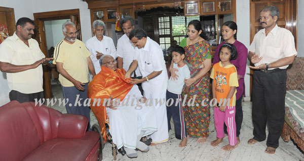ಮಂಗಳೂರು,ಜುಲೈ.13 : ಧಾರವಾಡದ ಕರ್ನಾಟಕ ವಿದ್ಯಾವರ್ಧಕ ಸಂಘದ ಅಧ್ಯಕ್ಷ ನಾಡೋಜ ಡಾ| ಪಾಟೀಲ ಪುಟ್ಟಪ್ಪ (ಪಾಪು) ಅವರು ಇತ್ತೀಚೆಗೆ ಮಂಗಳೂರಿಗೆ ಭೇಟಿಯಿತ್ತ ಸಂದರ್ಭದಲ್ಲಿ ದ.ಕ. ಜಿಲ್ಲಾ ಕನ್ನಡ ಸಾಹಿತ್ಯ ಪರಿಷತ್ ಅಧ್ಯಕ್ಷ ಎಸ್. ಪ್ರದೀಪ ಕುಮಾರ ಕಲ್ಕೂರ ಅವರನ್ನು ಶಾಲುಹೊದಿಸಿ ಗೌರವಿಸಿದರು.