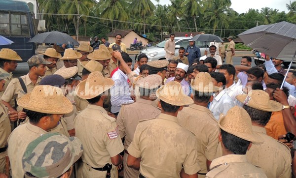 ಪ್ರತಿಭಟನಾಕಾರರು ಮತ್ತು ಪೊಲೀಸ್ ಅಧಿಕಾರಿಗಳ ನಡುವೆ ಒಂದು ಹಂತದಲ್ಲಿ ಮಾತಿನ ಚಕಮಕಿ ನಡೆಯಿತು. ಪ್ರತಿಭಟನೆಗೆ ಅವಕಾಶ ಕಲ್ಪಿಸಬೇಕು ಎಂಬ ಕೋರಿಕೆ ಇಲಾಖೆ ಅನುಮತಿ ನೀಡಲಿಲ್ಲ. ಕಪ್ಪು ಬಾವುಟ ಪ್ರದರ್ಶಿಸಿದರೆ ಬಂಧಿಸುತ್ತೇವೆ ಎಂದು ಪೊಲೀಸ್ ಅಧಿಕಾರಿಗಳು ಪ್ರತಿಭಟನಾ ನಿರತರನ್ನು ಎಚ್ಚರಿಸಿದರು. ಕೊನೆಗೆ ಪ್ರತಿಭಟನಾ ನಿರತರಿಗೆ ಮನವಿ ಸಲ್ಲಿಸಲು ಅವಕಾಶ ನೀಡಲಾಯಿತು.