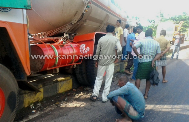 ಇಂದು ಬೆಳಿಗ್ಗೆ ಪಡೀಲ್ ಬಳಿ ರಸ್ತೆಯಲಿ ಹೋಗುತ್ತಿದ್ದ ಎಚ್ ಪಿ ಸಿಎಲ್ ಸಂಸ್ಥೆಗೆ ಸೇರಿದ ಟ್ಯಾಂಕರ್ ಚಾಲಕನ ನಿಯಂತ್ರಣ ಕಳೆದು   ಕೊಂಡು  ಡಿವೈಡರ್ ಮೇಲೆ ಹತ್ತಿ ನಿಂತಿದೆ. ಇದರಿಂದ ಗಾಬರಿಗೊಂಡ ಸ್ಥಳೀಯರು ಮನೆಯಿಂದ ಹೊರಗೆ ಓಡಿ ಬಂದು ಜಮಾಯಿಸಿ ದ್ದಾರೆ.