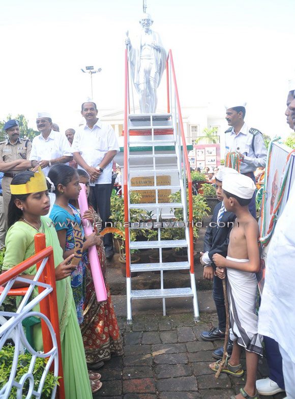 ಮಂಗಳೂರು,ಅ.2: ಭಾರತ ಸೇವಾದಳ ವತಿಯಿಂದ ರಾಷ್ಟ್ರಪಿತ ಮಹಾತ್ಮ ಗಾಂಧೀಜಿಯವರ ಜನ್ಮದಿನವನ್ನು ಶುಕ್ರವಾರ ನಗರದ ಪುರಭವನದ ಬಳಿಯ ಗಾಂಧಿ ಪಾರ್ಕ್ ನಲ್ಲಿ ಆಚರಿಸಿತು.ಕಾರ್ಯಕ್ರಮವನ್ನು ದ.ಕ.ಜಿಲ್ಲಾಧಿಕಾರಿ ಎ.ಬಿ. ಇಬ್ರಾಹಿಂ ಗಾಂಧಿ ಪ್ರತಿಮೆಗೆ ಹಾರಾರ್ಪಣೆ ಮಾಡುವ ಮೂಲಕ ಉದ್ಘಾಟಿಸಿದರು.