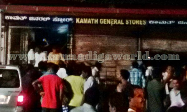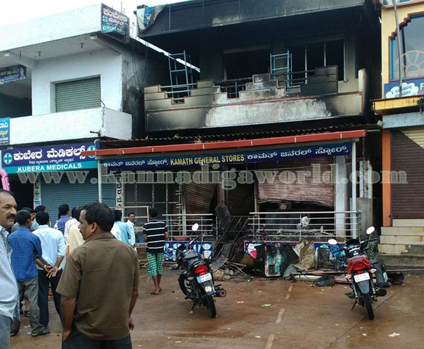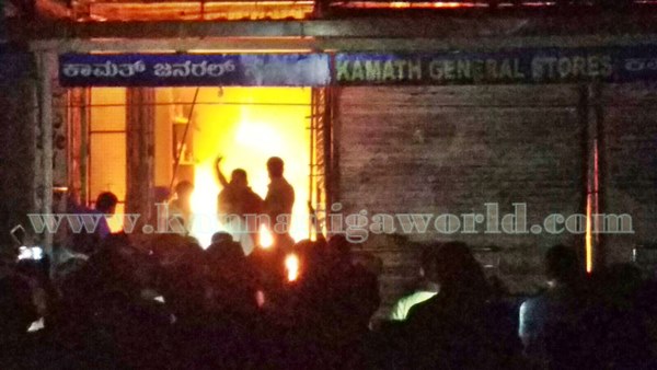 ರವೀಂದ್ರನಾಥ್ ಕಾಮತ್ ಎನ್ನುವವರಿಗೆ ಸೇರಿದ ದೊಡ್ಡ ದಿನಸಿ ಅಂಗಡಿ ಇದಾಗಿದ್ದು ದಿನೋಪಯೋಗಿ ವಸ್ತುಗಳು ಸೇರಿದಂತೆ ಬಳಕೆಯ ಪ್ರಿಡ್ಜ್ ಸೇರಿದಂತೆ ಬೆಲೆಬಾಳುವ ಪರಿಕರಗಳಿದ್ದವು. ರಾತ್ರಿ ೧೧.೩೦ರ ಸುಮಾರಿಗೆ ಅಂಗಡಿಯಲ್ಲಿ ಬೆಂಕಿ ಕಾಣಿಸಿಕೊಂಡಿದ್ದು ಕ್ಷಣದಲ್ಲೇ ಬೆಂಕಿಯ ಕೆನ್ನಾಲಿಗೆ ಇಡೀ ಕೊಣೆಯನ್ನು ವ್ಯಾಪಿಸಿ ಸಂಪೂರ್ಣ ಅಂಗಡಿ ಬೆಂಕಿಗೆ ನಲುಗಿಹೋಗಿದೆ. ಅಂಗಡಿ ಒಳಗಿದ್ದ ಭಾಗಶಃ ಎಲ್ಲಾ ವಸ್ತುಗಳು ಬೆಂಕಿಗಾಹುತಿಯಾಗಿದೆ. ಅಲ್ಲದೇ ಬೆಂಕಿ ಪ್ರಕರತೆಗೆ ಸಂಪೂರ್ಣ ಕಟ್ಟಡವು ಹಾನಿಗೊಳಗಾಗಿದ್ದು ಅಂದಾಜು ಒಂದು ಕೋಟಿಗೂ ಅಧಿಕ ನಷ್ಟ ಸಂಭವಿಸಿದೆ. ಶಾರ್ಟ್ ಸರ್ಕ್ಯೂಟಿನಿಂದ ಈ ಬೆಂಕಿ ಅವಘಡ ಸಂಭವಿಸಿದೆಯೆನ್ನಲಾಗುತ್ತಿದೆ.