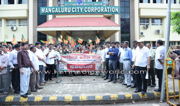 ಮಂಗಳೂರು, ಅ.07 : ಮಂಗಳೂರು ಮಹಾನಗರ ಪಾಲಿಕೆಯ ಆಡಳಿತ ವೈಫಲ್ಯವನ್ನು ಖಂಡಿಸಿ ಬಿಜೆಪಿ ಮಂಗಳೂರು ನಗರ ದಕ್ಷಿಣ ವಿಧಾನಸಭಾ ಕ್ಷೇತ್ರದ ವತಿಯಿಂದ ಮಂಗಳವಾರ ಮನಪಾ ಕಚೇರಿ ಎದುರು ಧರಣಿ ನಡೆಯಿತು.
