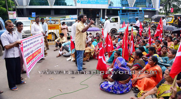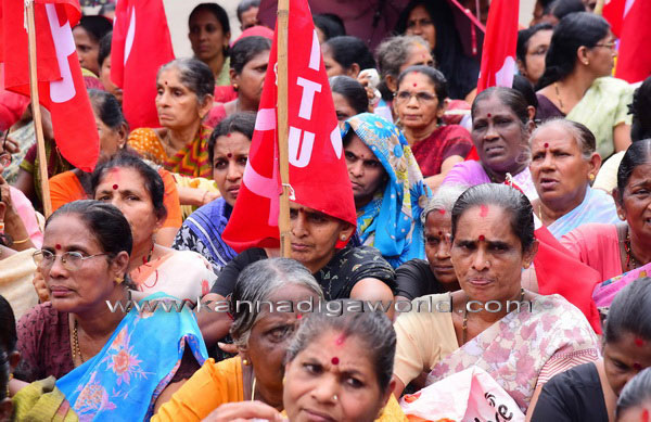 ನೂರಾರು ಸಂಖ್ಯೆಯಲ್ಲಿ ಕಾರ್ಮಿಕರು ಮೈದಾನ ರಸ್ತೆಯಲ್ಲಿರುವ ಸಿಐಟಿಯು ಕಚೇರಿಯಿಂದ ಮೆರವಣಿಗೆಯಲ್ಲಿ ಹೊರಟು ಮಾರಕರ ವಿರುದ್ಧ ಘೋಷಣೆಗಳನ್ನು ಕೂಗುತ್ತಾ ಜಿಲ್ಲಾಧಿಕಾರಿ ಕಚೇರಿಯೆದುರು ಜಮಾಯಿಸಿದರು.