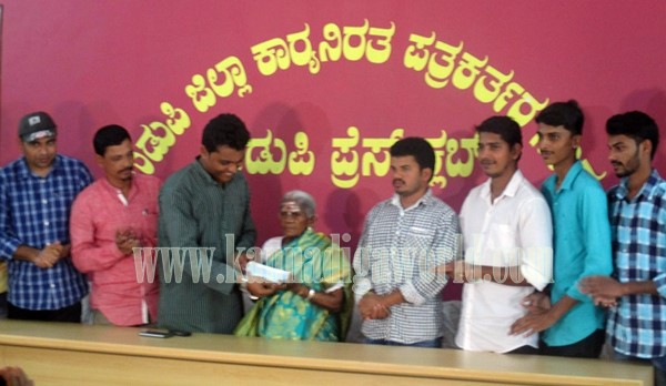ಉಡುಪಿ: ಉಡುಪಿಯ ಯುವಕರ ತಂಡವೊಂದು “ನೆರಳು- ನೆರವು ನಿಧಿ ಸಂಗ್ರಹ ಅಭಿಯಾನ’ದಡಿ ಸಂಗ್ರಹಿಸಿದ 1,78,150 ಲ. ರೂ. ದೇಣಿಗೆಯ ಚೆಕ್ಕನ್ನು ಸಾಲು ಮರದ ತಿಮ್ಮಕ್ಕನಿಗೆ ಉಡುಪಿ ಪ್ರಸ್ಕ್ಲಬ್ನಲ್ಲಿ ಹಸ್ತಾಂತರಿಸಿದರು.