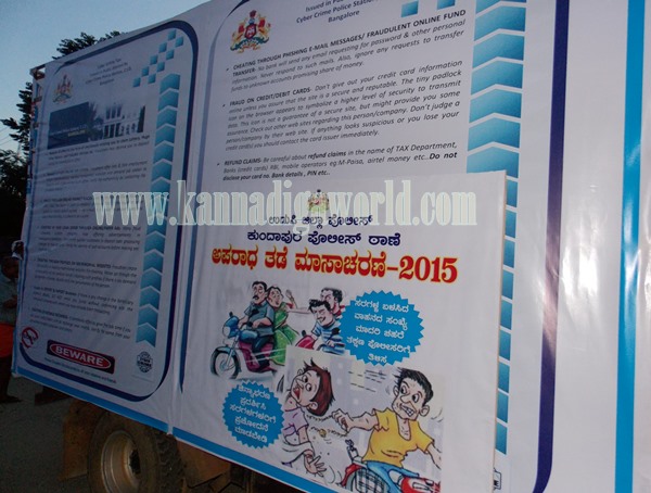 ಉಡುಪಿ ಜಿಲ್ಲಾ ಪೊಲೀಸ್ ವತಿಯಿಂದ ಅಪರಾಧ ತಡೆ ಮಾಸಾಚರಣೆ-2015 ರ ಅಂಗವಾಗಿ ಸುರಕ್ಷಾ ರಥವು ತಾಲೂಕಿನ ವಿವಿಧ ಭಾಗಗಳಲ್ಲಿ ಸಂಚರಿಸಿ ಜನಜಾಗ್ರತಿ ಮೂಡಿಸಲಿದೆ.