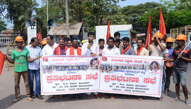 ಮಂಗಳೂರು,ಮಾ.21:  ಅಕ್ರಮ ಮರಳು ಸಾಗಾಟ ಹಿನ್ನೆಲೆ ದ.ಕ. ಜಿಲ್ಲೆಯಲ್ಲಿ ಮರಳುಗಾರಿಕೆ ಸ್ಥಗಿತಗೊಳಿಸಿರುವುದನ್ನು ವಿರೋಧಿಸಿ ತುಳುನಾಡ ರಕ್ಷಣಾ ವೇದಿಕೆ ನೇತೃತ್ವದಲ್ಲಿ ಸೋಮವಾರ ದ.ಕ. ಜಿಲ್ಲಾಧಿಕಾರಿ ಕಚೇರಿ ಎದುರು ಪ್ರತಿಭಟನೆ ನಡೆಯಿತು.