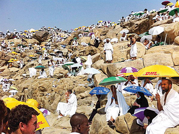 ಸಹಸ್ರಾರು ಯಾತ್ರಿಕರು ಗುಂಪುಗುಂಪುಗಳಾಗಿ ಅರಫಾ ಪರ್ವತದ ಮೇಲೆ ಜಮಾಯಿಸಿದ್ದರು ಹಾಗೂ ಅದರ ಸುತ್ತಲೂ ಇರುವ ವಿಶಾಲವಾದ ಮೈದಾನದಲ್ಲಿ ಅವರು ಸೂರ್ಯಾಸ್ತದವರೆಗೂ ಪ್ರಾರ್ಥನೆಯನ್ನು ಸಲ್ಲಿಸಿದ್ದರು.