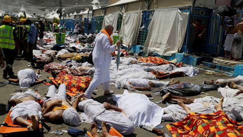 ಬಕ್ರೀದ್ ಹಬ್ಬದ ಪ್ರಾರ್ಥನೆ ವೇಳೆ ನೂಕುನುಗ್ಗಲು ಉಂಟಾಗಿ ಕಾಲ್ತುಳಿತ ಸಂಭವಿಸಿದ್ದು, ದುರಂತದಲ್ಲಿ 717 ಮಂದಿ ಮೃತಪಟ್ಟಿದ್ದಾರೆ ಮತ್ತು 863 ಯಾತ್ರಿಕರು ತೀವ್ರವಾಗಿ ಗಾಯಗೊಂಡಿದ್ದಾರೆ ಎಂದು ಸೌದಿ ಅರೇಬಿಯಾ ನಾಗರಿಕ ರಕ್ಷಣಾ ನಿರ್ದೇಶನಾಲಯ ತಿಳಿಸಿದೆ.