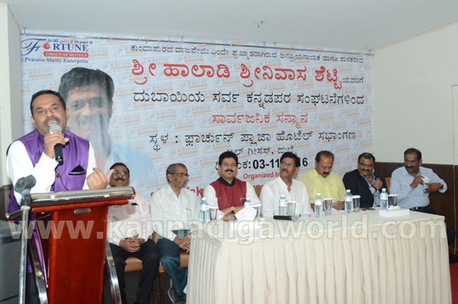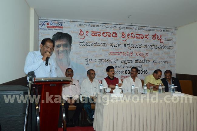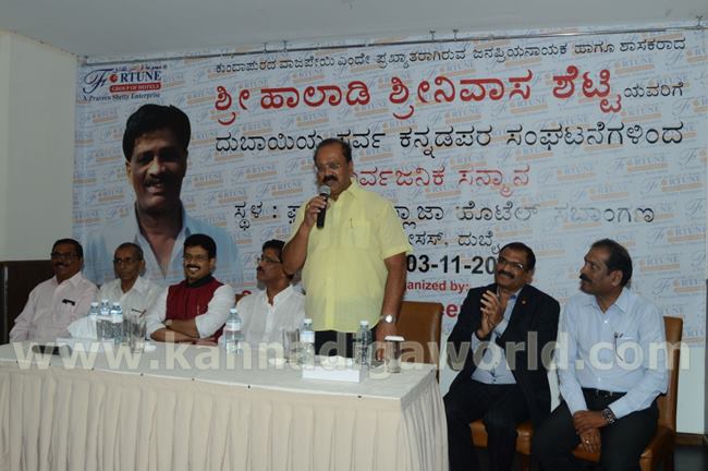 ದುಬೈ: ದುಬೈ ಕಿಸೆಸ್ಸ್’ನಲ್ಲಿರುವ ಫೋರ್ಚುನ್ ಪ್ಲಾಜಾ ಹೋಟೆಲ್’ನಲ್ಲಿ ಸರ್ವ ಕನ್ನಡಪರ ಸಂಘಟನೆಗಳ ನೇತೃತ್ವದಲ್ಲಿ ಗುರುವಾರ ಆಯೋಜಿಸಲಾಗಿದ್ದ ಕಾರ್ಯಕ್ರಮದಲ್ಲಿ ಕುಂದಾಪುರದ ಜನಪ್ರಿಯ ಶಾಸಕ ಹಾಲಾಡಿ ಶ್ರೀನಿವಾಸ ಶೆಟ್ಟಿ ಅವರಿಗೆ ಪೌರ ಸನ್ಮಾನ ನೀಡಿ ಗೌರವಿಸಲಾಯಿತು.