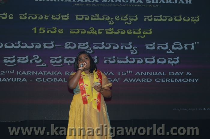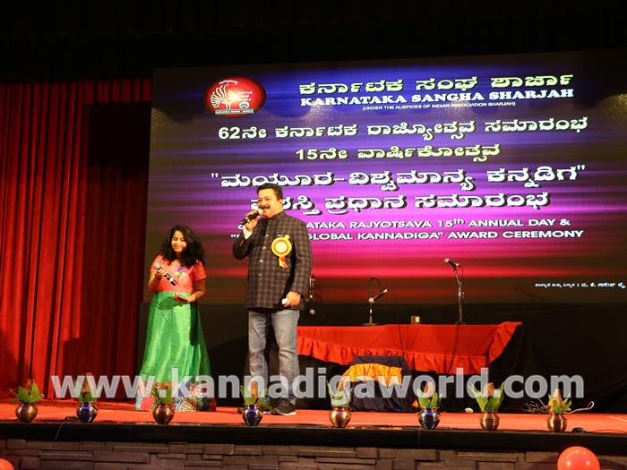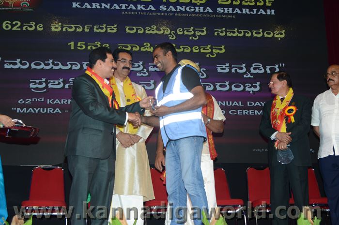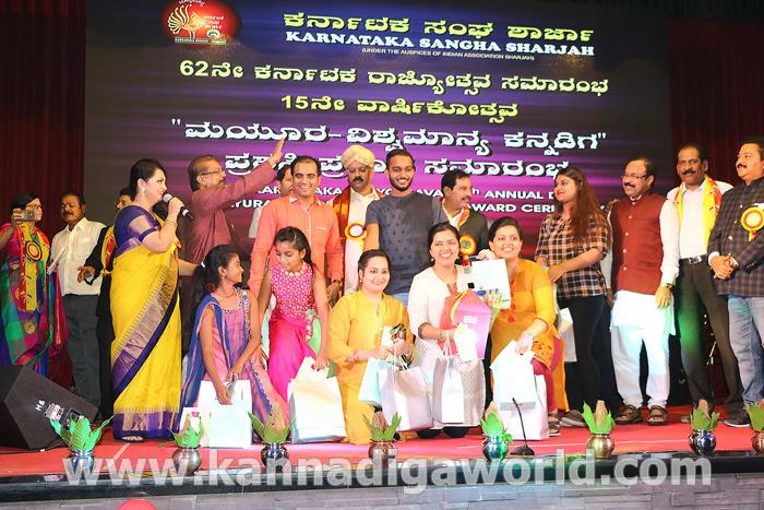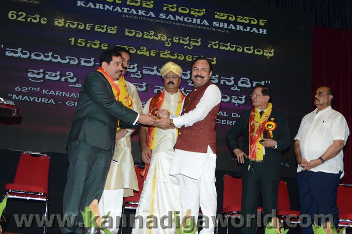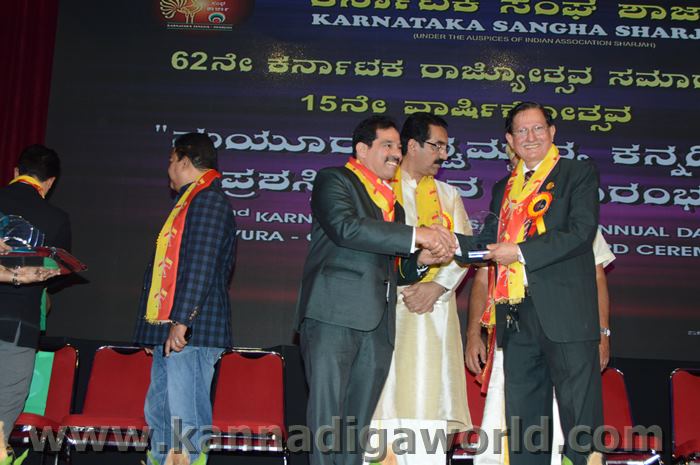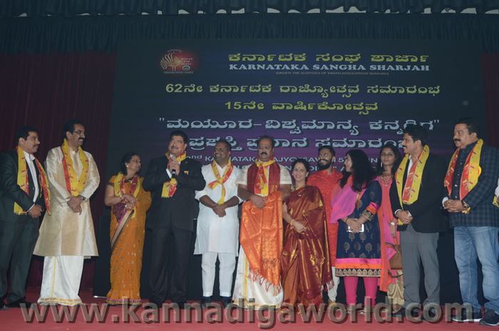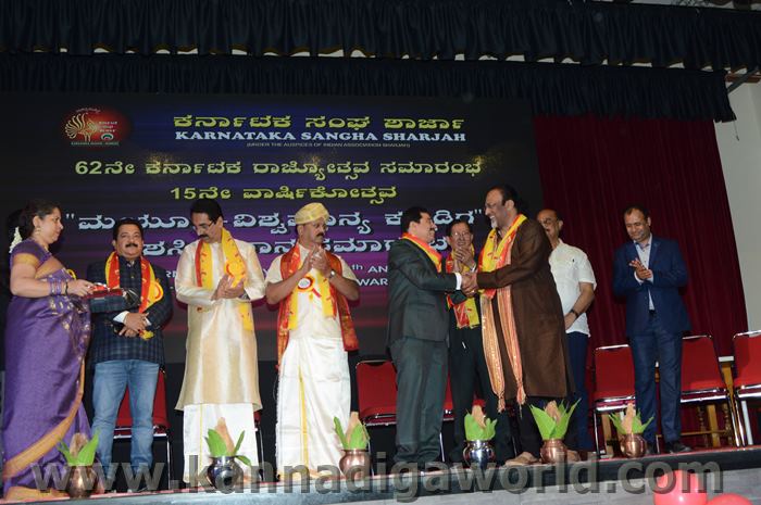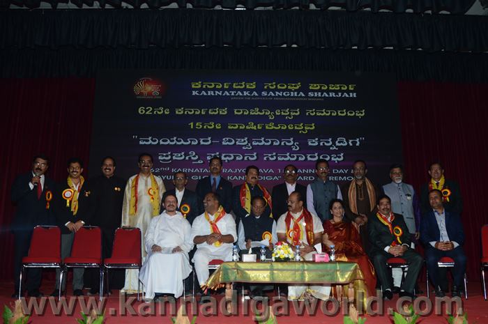 ಕರ್ನಾಟಕ ಸಂಘ ಶಾರ್ಜಾದ ಆಶ್ರಯದಲ್ಲಿ 62ನೇ ಕರ್ನಾಟಕ ರಾಜ್ಯೋತ್ಸವ ಸಮಾರಂಭ, ಕರ್ನಾಟಕ ಸಂಘ ಶಾರ್ಜಾ 15ನೇ ವಾರ್ಷಿಕೋತ್ಸವ ಮತ್ತು “ಮಯೂರ ವಿಶ್ವ ಮಾನ್ಯ ಕನ್ನಡಿಗ ಪ್ರಶಸ್ತಿ” ಪ್ರಧಾನ ಸಮಾರಂಭ 2017 ನವೆಂಬರ್ 17ನೇ ತಾರೀಕು ಶುಕ್ರವಾರ ಸಂಜೆ 4.00 ಗಂಟೆಯಿಂದ ಶಾರ್ಜಾ ಇಂಡಿಯನ್ ಅಸೋಸಿಯೇಶನ್ ಬೃಹತ್ ಸಭಾಂಗಣದಲ್ಲಿ ಅದ್ಧೂರಿಯಾಗಿ ನಡೆಯಿತು.