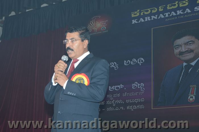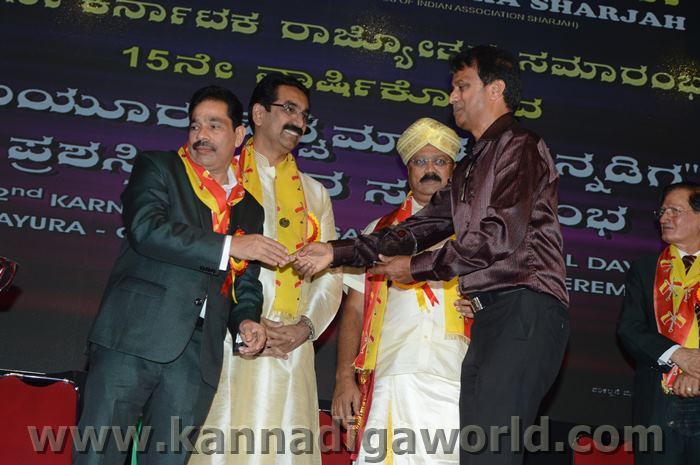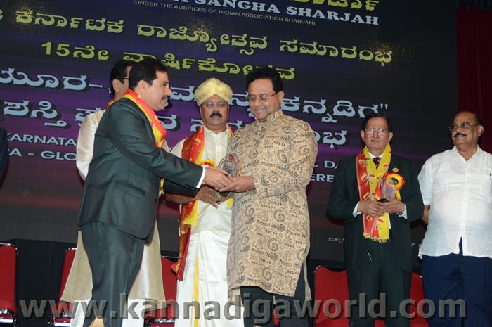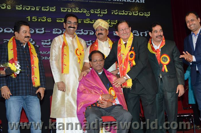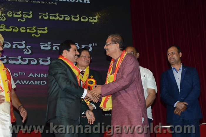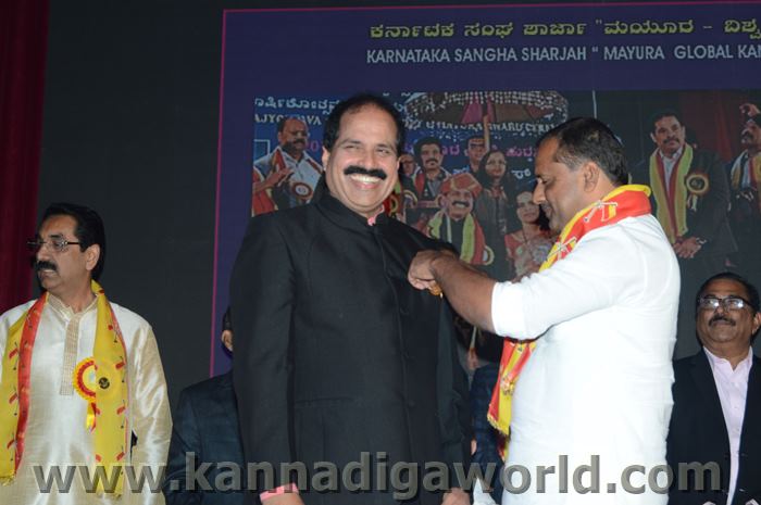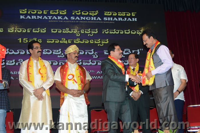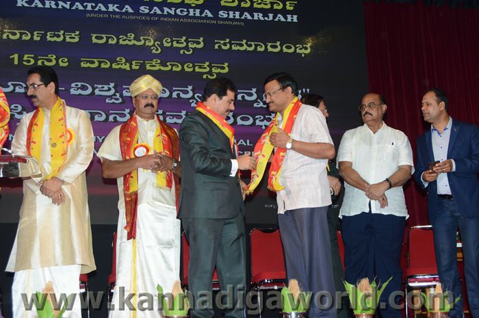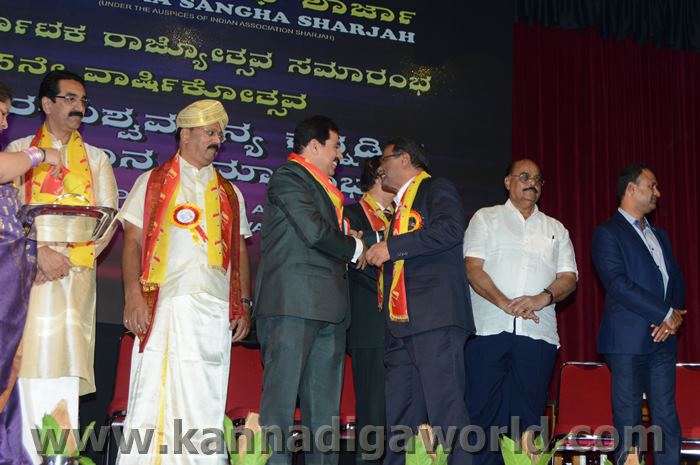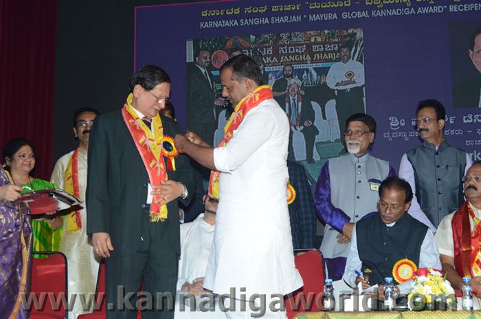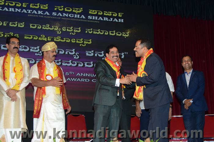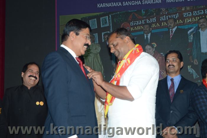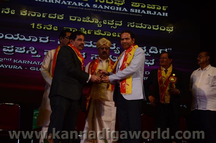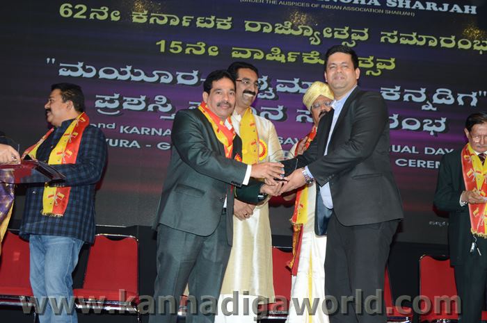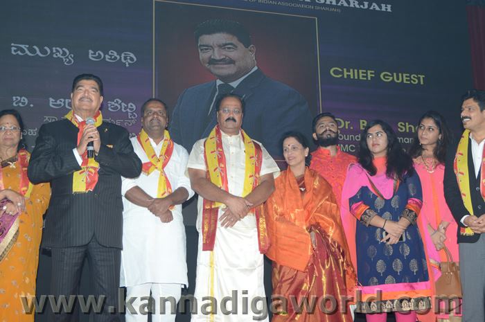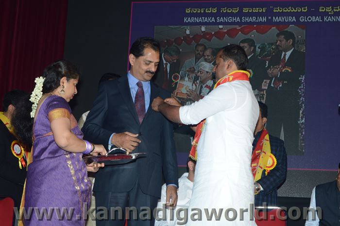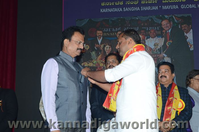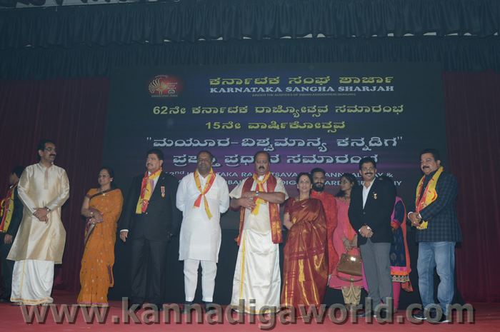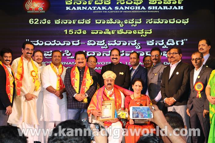 ಕರ್ನಾಟಕ ಸಂಘ ಶಾಜಾ ಪ್ರತಿವರ್ಷ ಅರಬ್ ಸಂಯುಕ್ತ ಸಂಸ್ಥಾನದಲ್ಲಿ ಸಾಧನೆ ಮಾಡಿರುವ ಕನ್ನಡಿಗರನ್ನು ಗುರುತಿಸಿ ನೀಡಲಾಗುತಿರುವ ಪ್ರತಿಷ್ಠಿತ “ಮಯೂರ ವಿಶ್ವಮಾನ್ಯ ಕನ್ನಡಿಗ ಪ್ರಶಸ್ತಿ” ಯನ್ನು ಡಾ. ಬಿ. ಆರ್. ಶೆಟ್ಟಿಯವರು ಮತ್ತು ಕರ್ನಾಟಕ ಸರ್ಕಾರದ ಆಹಾರ ಮತ್ತು ನಾಗರಿಕ ಸರಬರಾಜು ಮಾನ್ಯ ಸಚಿವರಾದ ಶ್ರೀ ಯು. ಟಿ. ಖಾದರ್ ಅಹ್ವಾನಿತ ಅತಿಥಿಗಳು, ಗಣ್ಯಾತಿ ಗಣ್ಯರ ಸಮ್ಮುಖದಲ್ಲಿ ಸಮ್ಮುಖದಲ್ಲಿ ಪ್ರಧಾನಿಸಿದರು. ಸಮಾರಂಭದಲ್ಲಿ ಗೌರವ ಅತಿಥಿಗಳಾದ ವಂದನೀಯ ಗುರುಗಳಾದ ಮ್ಯಾಕ್ಸಿಮ್ ಪಿಂಟೊ, ಶಾರ್ಜಾ ಇಂಡಿಯನ್ ಅಸೋಸಿಯೇಶನ್ ಅಧ್ಯಕ್ಷರಾದ ಅಡ್ವಕೇಟ್ ವೈ. ಎ. ರಹೀಂ, ಯು. ಎ. ಇ. ಎಕ್ಸ್ಚೆಂಜ್ ಅಧ್ಯಕ್ಷರಾದ ಶ್ರೀ ಸುಧೀರ್ ಕುಮಾರ್ ಶೆಟ್ಟಿ, ಕರ್ನಾಟಕ ಅನಿವಾಸಿ ಭಾರತೀಯ ಸಮಿತಿ ಯು.ಎ.ಇ. ಯ ಅಧ್ಯಕ್ಷರಾದ ಶ್ರೀ ಪ್ರವೀಣ್ ಕುಮಾರ್ ಶೆಟ್ಟಿ, ಅಜ್ಮಾನ್ ಗಲ್ಫ್ ಮೆಡಿಕಲ್ ಕಾಲೇಜು ಆಸ್ಪತ್ರೆಯ ವತಿಯಿಂದ ಡಾ. ಸದಾಶಿವ ಬಂಗೇರಾ, ಪ್ರಮುಖ ಪ್ರಾಯೋಜಕರು ಶ್ರೀ ಹರೀಶ್ ಶೇರಿಗಾರ್, ಕರ್ನಾಟಕ ಸಂಘ ಶಾರ್ಜಾ ಪೋಷಕರು ಶ್ರೀ ಮಾರ್ಕ್ ಡೆನಿಸ್ ಡೆನಿಸ್, ಕರ್ನಾಟಕ ಸಂಘ ಶಾರ್ಜಾ ಅಧ್ಯಕ್ಷರಾದ ಶ್ರೀ ಸುಗಂಧ ರಾಜ್ ಬೇಕಲ್ ಸನ್ಮಾನ ಪ್ರಕ್ರೀಯೆಯಲ್ಲಿ ಭಾಗಿಗಳಾಗಿದ್ದರು. ಗಣ್ಯ ಅತಿಥಿಗಳನ್ನು ಮೆರವಣಿಗೆ ಮೂಲಕ ಸಭಾಂಗಣಕ್ಕೆ ಬರಮಾಡಿಕೊಂಡು ಸನ್ಮಾನ ಕಾರ್ಯಕ್ರಮದ ಪ್ರಾರಂಭದಲ್ಲಿ ಶ್ರೀ ಇರ್ಷಾದ್ ಮೂಡಬಿದರೆಯವರು ಸನ್ಮಾನ ಸಮಾರಂಭಕ್ಕೆ ರಚಿಸಿದ ಚುಟುಕುಗಳನ್ನು ವಾಚಿಸಿ ಶ್ರೀ ಬಿ. ಕೆ. ಗಣೇಶ್ ರೈ ಕಾರ್ಯಕ್ರಮ ನಿರೂಪಣೆ ಕಾರ್ಯವನ್ನು ನೆರವೇರಿಸಿದರು.