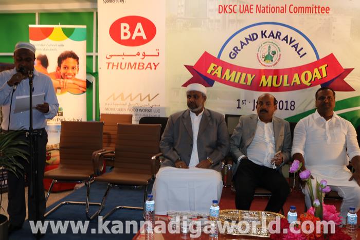 ಡಿ.ಕೆ.ಎಸ್.ಸಿ ಯು.ಎ.ಇ ರಾಷ್ಟೀಯ ಸಮಿತಿ ಪ್ರಧಾನ ಕಾರ್ಯದರ್ಶಿ ಎಸ್.ಯೂಸುಫ್ ಅರ್ಲಪದವು ಅತಿಥಿಗಳನ್ನು ವೇದಿಕೆಗೆ ಆಹ್ವಾನಿಸುವುದರೊಂದಿಗೆ ಫ್ಯಾಮಿಲಿ ಮೂಲಾಖತ್ ಚೆಯರ್ಮೆನ್ ಅಬ್ದುಲ್ ಲತೀಫ್ ಮುಲ್ಕಿ ಸ್ವಾಗತ ಭಾಷಣ ಮಾಡಿ ಡಿ.ಕೆ.ಎಸ್.ಸಿ ಸೆಂಟ್ರಲ್ ಕಮಿಟಿ ಪ್ರಧಾನ ಕಾರ್ಯದರ್ಶಿ ಹಾಜಿ. ಇಸ್ಮಾಯಿಲ್ ಕಿನ್ಯ ರವರು ಡಿ.ಕೆ.ಎಸ್.ಸಿ ನಡೆದು ಬಂದ ದಾರಿಯನ್ನು ವಿವರಿಸುವುದರೊಂದಿಗೆ ಸಭೆಯನ್ನು ಉದ್ಘಾಟಿಸಿದರು. ರಾಷ್ಟ್ರಿಯ ಸಮಿತಿ ಅದ್ಯಕ್ಷರಾದ ಹಾಜಿ.ಇಕ್ಬಾಲ್ ಕಣ್ಣಂಗಾರ್ ರವರು ಡಿ.ಕೆ.ಎಸ್.ಸಿ ಯು.ಎ.ಇ ವತಿಯಿಂದ ನಡುಸುತ್ತಿರುವ ಮಹಿಳಾ ಕಾಲೇಜು ಕಟ್ಟಡ ನಿರ್ಮಾಣ ಹಾಗೂ ಇನ್ನಿತರ ಕಾರ್ಯಕ್ರಮಗಳ ಬಗ್ಗೆ ಸಚಿವರು ಶಾಸಕ ರು ಅತಿಥಿಗಳು ಹಾಗೂ ಸಭಿಕರಿಗೆ ತಿಳಿಸುವುದರೊಂದಿಗೆ ಎಲ್ಲರ ಸಹಕಾರವನ್ನು ಕೋರಿದರು. ಸಚಿವರು ಈ ಸಂದರ್ಭದಲ್ಲಿ ಡಿ.ಕೆ.ಎಸ್.ಸಿ ಸೆಂಟ್ರಲ್ ಕಮಿಟಿ ಅಧ್ಯಕ್ಷರಾದ ಸಯ್ಯದ್ ಆಟಕ್ಕೋಯ ತಂಘಳ್ ರವರ ನಿರ್ದೇಶನದಂತೆ ಡಿ.ಕೆ.ಎಸ್.ಸಿ ಇದರ ಅದೀನ ಸಂಸ್ಥೆಯಾದ ಅಲ್ ಇಹ್ಸಾನ್ ಎಜುಕೇಷನ್ ಸೆಂಟರ್ ಇದರ ಸ್ಥಿರ ವರಮಾನಕ್ಕಾಗಿ ಪ್ರಾರಂಭಿಸಿದ ಸಿಲ್ವರ್ ಕಾರ್ಡ್ ಯೋಜನೆಯನ್ನು ಹಾಜಿ.ಮುಹಮ್ಮದ್ ದೆಂಜಿಪ್ಪಾಡಿ ರವರಿಗೆ ನೀಡುವುದರ ಮೂಲಕ ಚಾಲನೆ ನೀಡಲಾಯಿತು. ಈ ಕಾರ್ಯಕ್ರಮವನ್ನು ಸಿಲ್ವರ್ ಕಾರ್ಡ್ ಯೋಜನೆ ಯು.ಎ.ಇ ಸಂಚಾಲಕರಾದ ಹಾಜಿ.ನವಾಜ್ ಕೋಟೆಕ್ಕಾರ್ ನಡೆಸಿಕೊಟ್ಟರು. ಸಚಿವರು ತಮ್ಮ ಭಾಷಣದಲ್ಲಿ ಸರಕಾರದಿಂದ ಸಿಗುವ ಸೌಲತ್ತಿನ ಬಗ್ಗೆ ವಿವರಿಸುತ್ತಾ ಡಿ.ಕೆ.ಎಸ್.ಸಿ ಯ ಕಾರ್ಯವೈಕರ್ಯವನ್ನು ಕೊಂಡಾಡಿದರು ಹಾಗೂ ತಮ್ಮ ಸಂಪೂರ್ಣ ಸಹಕಾರ ನೀಡುವುದಾಗಿ ಭರವಸೆ ನೀಡಿದರು. ಇನ್ನೋರ್ವ ಮುಖ್ಯ ಅತಿಥಿ ಮಂಗಳೂರು ಶಾಸಕರಾದ ಮೊಯ್ದಿನ್ ಬಾವ ರವರು ಅಚ್ಚುಕಟ್ಟಾಗಿ ನಡೆದ ಎಲ್ಲ ಕಾರ್ಯಕ್ರಮದ ದ ಬಗ್ಗೆ ಮೆಚ್ಚುಗೆ ವ್ಯಕ್ತ ಪಡಿಸುತ್ತಾ ಸ್ಥಾಪನೆಗೆ ಸಹಕಾರ ನೀಡುವುದಾಗಿ ಭರವಸೆ ನೀಡಿದರು. ಅತಿಥಿಗಳಾಗಿ ವೇದಿಕೆಯಲ್ಲಿ ಉಪಸ್ಥಿತರಿದ್ದ ಅಲ್ ಫಲಾಹ್ ಗ್ರೂಪ್ ನ ನಝೀರ್ ಹುಸೈನ್, ಬಿ.ಸಿ.ಎಫ್. ಅಧ್ಯಕ್ಷರಾದ ಡಾ. ಬಿ.ಕೆ .ಯೂಸುಫ್, ಬಿ.ಎಂ.ಸಬ್ಬಾರ್ – ಅಲ್ ಪುರ್ಕಾನ್ ರವರು ಶುಭ ಹಾರೈಕೆಯೊಂದಿಗೆ ಸಹಕಾರವನ್ನು ನೀಡುವುದಾಗಿ ತಿಳಿಸಿದರು. ಅತಿಥಿಗಳಿಗೆ ನೆನಪಿನ ಕಾಣಿಕೆ ನೀಡಿ ಅಭಿನಂದಿಸಲಾಯಿತು. ವೇದಿಕೆಯಲ್ಲಿ ಸ್ಪರ್ಧೆಯಲ್ಲಿ ಭಾಗವಹಿಸಿದ ವಿಜೇತರಿಗೆ ಬಹುಮಾನ ವಿತರಣೆಯು ನಡೆಯಿತ್ತು. ಉಮ್ಮರ್ ಎಸ್.ಎಂ. ಹಾಗೂ ಕಮಲ್ ಅಜ್ಜಾವರ ಬಹುಮಾನ ವಿತರಣಾ ಕಾರ್ಯಕ್ರಮವನ್ನು ನಡೆಸಿಕೊಟ್ಟರು. ಪ್ರಸ್ತುತ ಕಾರ್ಯಕ್ರಮದಲ್ಲಿ ಸೇರಿದ ಸುಮಾರು 800 ಕ್ಕಿಂತಲೂ ಹೆಚ್ಚಿನ ಜನರಲ್ಲಿ ಒಬ್ಬರನ್ನು ಅದೃಷ್ಟ ಚೀಟಿ ಎತ್ತುವ ಮೂಲಕ ಒಬ್ಬರಿಗೆ ಪವಿತ್ರ ಉಮ್ರಾ ಯಾತ್ರೆಗೆ ಅವಕಾಶ ಕಲ್ಪಿಸಲಾಯಿತು ಅದರಲ್ಲಿ ಜಾವಿದ್ ಅಲಿ ಕಾಪು ಭಾಗ್ಯಶಾಲಿಯಾಗಿ ಒರಹೊಮ್ಮಿದರು. ಪ್ಯಾಮಲಿ ಮುಲಾಖತ್ ಸಹ ಸಂಚಾಲಕ ಇಬ್ರಾಹಿಂ ಕಳತ್ತೂರ್ ರವರು ಧನ್ಯವಾದ ಸಮರ್ಪಿಸಿದರು.