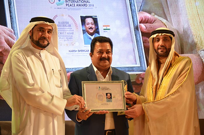 ದುಬೈ ಇಂಡಿಯನ್ ಹೈಸ್ಕೂಲಿನ ಶೇಖ್ ರಾಶಿದ್ ಆಡಿಟೋರಿಯಮಿನಲ್ಲಿ ಗುರುವಾರ ಸಂಜೆ ನಡೆದ ವರ್ಣರಂಜಿತ ಅದ್ದೂರಿ ಸಮಾರಂಭದಲ್ಲಿ ಶಾಂತಿ ಹಾಗು ಸಾಮಾಜಿಕ ಕ್ಷೇತ್ರಕ್ಕೆ ನೀಡಿದ ಕೊಡುಗೆಯನ್ನು ಪರಿಗಣಿಸಿ ಹರೀಶ್ ಶೇರಿಗಾರ್ ಅವರಿಗೆ ದುಬೈ ಝರೂನಿ ಫೌಂಡೇಶನ್’ನ ಸುಹೈಲ್ ಅಲ್ ಝರೂನಿ ಹಾಗು ಶಾರ್ಜಾ ಎಲೆಕ್ಟ್ರಿಸಿಟಿ & ವಾಟರ್ ಆಥೋರಿಟಿಯ ಡಾ.ರಾಶಿದ್ ಅಲ್ ಲೀಮ್ ಅವರು “ಅಂತಾರಾಷ್ಟ್ರೀಯ ಶಾಂತಿ ಪ್ರಶಸ್ತಿ” ನೀಡಿ ಗೌರವಿಸಿದರು. ಈ ವೇಳೆ HMC(ಹಿಂದೂ-ಮುಸ್ಲಿಂ-ಕ್ರಿಶ್ಚಿಯನ್ )ಯುನೈಟೆಡ್’ನ ಸ್ಥಾಪಕ ಅಧ್ಯಕ್ಷ ಶಕೀಲ್ ಹಸನ್ ಹೊನ್ನಾಳ ಉಪಸ್ಥಿತರಿದ್ದರು.
