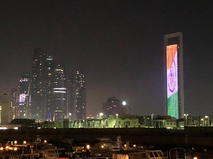ಭಾರತದ ಪ್ರಧಾನಿ ನರೇಂದ್ರ ಮೋದಿ ಶನಿವಾರ ಸಂಜೆ ಅಬುಧಾಬಿಗೆ ಆಗಮಿಸಿದ್ದು, ಅವರಿಗೆ ಅದ್ದೂರಿಯ ಸ್ವಾಗತ ನೀಡಲಾಯಿತು.