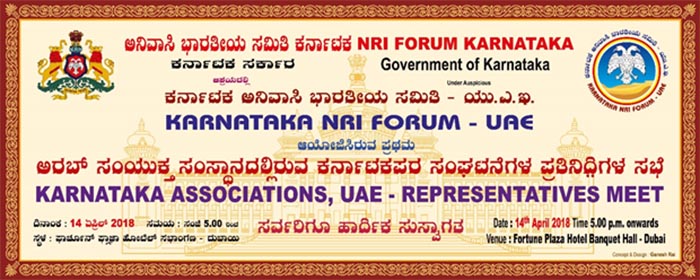 ಅರಬ್ ಸಂಯುಕ್ತ ಸಂಸ್ಥಾನದಲ್ಲಿ ನೆಲೆಸಿರುವ ಅನಿವಾಸಿ ಭಾರತೀಯರಲ್ಲಿ ಕರ್ನಾಟಕದವರು ಸ್ಥಾಪಿಸಿರುವ ಕರ್ನಾಟಕ ಪರ ಭಾಷೆ, ಜಾತಿ ಸಮುದಯದ ಸಂಘ ಸಂಸ್ಥೆಗಳ ಪದಾಧಿಕಾರಿಗಳ ಪ್ರಥಮ ಸಭೆಯನ್ನು ಕರ್ನಾಟಕ ಅನಿವಾಸಿ ಭಾರತೀಯ ಸಮಿತಿ ಯು.ಎ.ಇ. ಆಶ್ರಯದಲ್ಲಿ 2018 ಏಪ್ರಿಲ್ 14ನೇ ತಾರೀಕು ಸಂಜೆ ದುಬಾಯಿ ಯಲ್ಲಿರುವ ಫಾರ್ಚೂನ್ ಫ್ಲಾಜಾ ಹೋಟೆಲ್ ಸಭಾಂಗಣದಲ್ಲಿ ಆಯೋಜಿಸಲಾಗಿತ್ತು.
