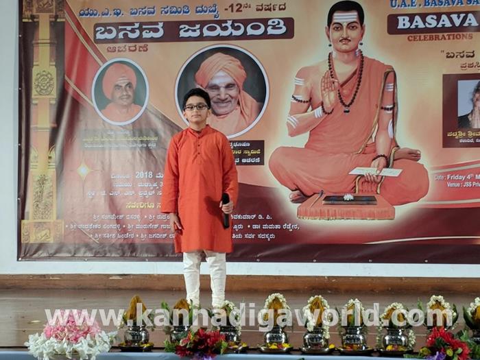 ನೀನೊಲಿದರೆ ಕೊರಡು ಕೊನರುವುದಯ್ಯ , ನೀನೊಲಿದರೆ ಬರಡು ಹಯನಹುದಯ್ಯ, ನೀನೊಲಿದರೆ ವಿಷವು ಅಮೃತವಹುದಯ್ಯ ನೀನೊಲಿದರೆ ಸಕಲ ಪಡಿಪದಾರ್ಥಗಳು ಇದಿರಲಿರ್ಪವು ಕೂಡಲಸಂಗಮದೇವಾ ಅಂದರು ಬಸವಣ್ಣನವರು . ಭಗವಂತನ ಅನುಗ್ರಹದಿಂದ ಕೂಡಿದ ಸಕಲ ಕಲಾ ವಿಧ್ವಾನರಿಂದ , ಪ್ರತಿಭಾನ್ವಿತ ಕಲಾವಿದರ ಕಲೆಯ ಪ್ರದರ್ಶನಗಳಿಂದ ಮೇ 4 ರ ಶುಕ್ರವಾರ ಸಂಜೆ ಬಸವ ಸಮಿತಿ ದುಬೈಯವರ 12 ನೇ ವರ್ಷದ ಬಸವ ಜಯಂತಿಯ ಆಚರಣೆ ಹಾಗು ‘ ಬಸವ ಭೂಷಣ ‘ ಪ್ರಶಸ್ತಿ ಪ್ರದಾನ ಸಮಾರಂಭ ಅದ್ದೂರಿಯಾಗಿ ಜರಗಿತು.