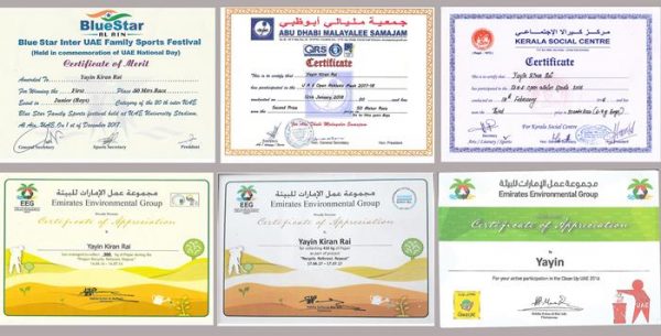 ಇಂಡಿಯಾ ಸೋಶಿಯಲ್ ಅಂಡ್ ಕಲಚರಲ್ ಸೆಂಟರ್, ಅಬುಧಾಬಿ ಮಲಯಾಳಿ ಸೆಂಟರ್, ಕೇರಳ್ ಸೋಶಿಯಲ್ ಸೆಂಟರ್ ಮತ್ತು ಬ್ಲೂ ಸ್ಟಾರ್ ಆಶ್ರಯದಲ್ಲಿ ನಡೆದಿರುವ ಎಲ್ಲಾ ಸ್ಪರ್ಧೆಗಳಲ್ಲಿ ಚಾಂಪಿಯನ್ ಆಗಿ ಪುರಸ್ಕಾರ ಪಡೆದಿರುವ ಯಾಯಿನ್ ಸದಾ ಉತ್ಸಾಹಿಯ ಚಿಲುಮೆಯಗಿದ್ದಾನೆ.