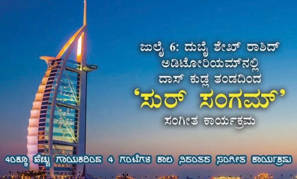 ಜುಲೈ 6: ದುಬೈ ಶೇಖ್ ರಾಶಿದ್ ಅಡಿಟೋರಿಯಮ್ ನಲ್ಲಿ ದಾಸ್ ಕುಡ್ಲ ತಂಡದಿಂದ ‘ಸುರ್ ಸಂಗಮ್’ ಸಂಗೀತ ಕಾರ್ಯಕ್ರಮ; 40ಕ್ಕೂ ಹೆಚ್ಚು ಗಾಯಕರಿಂದ 4 ಗಂಟೆಗಳ ಕಾಲ ನಿರಂತರ ಸಂಗೀತ ಕಾರ್ಯಕ್ರಮ