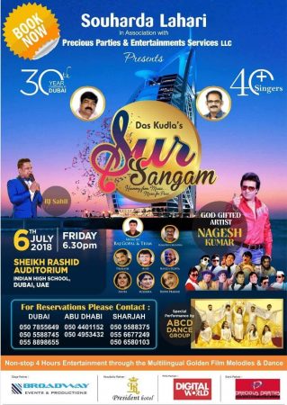 ಕರ್ನಾಟಕದಲ್ಲಿ ಸತತ 29ವರ್ಷಗಳಿಂದ ಸಾವಿರಾರು ಗಾಯಕರಿಂದ ಸಂಗೀತ ಪ್ರೇಮಿಗಳಿಗೆ ರಸದೌತಣ ನೀಡಿದ ದಾಸ್ ಕುಡ್ಲಾಸ್ ತಂಡವು ಇದೀಗ ತಮ್ಮ 30ನೇ ವರ್ಷದ ಸಂಭ್ರಮವನ್ನು ದುಬೈನ ಊದ್ ಮೆಹ್ತಾದಲ್ಲಿರುವ ಇಂಡಿಯನ್ ಹೈಸ್ಕೂಲಿನ ಶೇಕ್ ರಾಶಿದ್ ಅಡಿಟೋರಿಯಂನಲ್ಲಿ ‘ಸುರ್ ಸಂಗಮ್’ ಸಂಗೀತ ಕಾರ್ಯಕ್ರಮವನ್ನು ಆಯೋಜಿಸಿ ಬಹಳಷ್ಟು ಅದ್ಧೂರಿಯಾಗಿ ಆಚರಿಸಲಿದೆ.