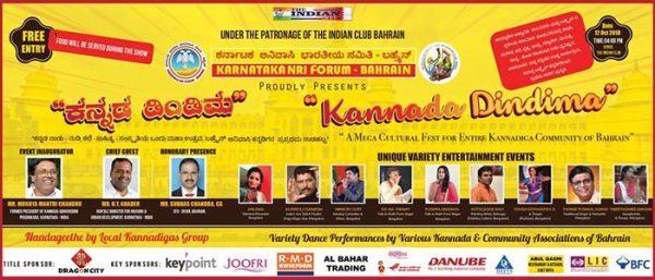 ಮನಾಮ, ಬಹ್ರೈನ್: ಕರ್ನಾಟಕ ಸರಕಾರದ ‘ಅನಿವಾಸಿ ಭಾರತೀಯ ಸಮಿತಿ’ಯ ಮಾರ್ಗದರ್ಶನದಂತೆ ಮುತ್ತಿನ ನಗರಿ ಬಹ್ರೈನ್ನಲ್ಲಿ ಅನಿವಾಸಿ ಕನ್ನಡಿಗರ ಕಲ್ಯಾಣ ಮತ್ತು ಹಿತರಕ್ಷಣೆಗಾಗಿ ಸೇವೆ ಸಲ್ಲಿಸಲಿರುವ ನೂತನ ಸಂಸ್ಥೆ ‘ಕರ್ನಾಟಕ ಅನಿವಾಸಿ ಭಾರತೀಯ ಸಮಿತಿ – ಬಹ್ರೈನ್’ ಇದರ ಚೊಚ್ಚಲ ಆಯೋಜನೆಯ ಹಾಗೂ ಸ್ಥಳೀಯವಾಗಿ ಕನ್ನಡದ ರಂಗಕ್ರಾಂತಿಗೆ ನಾಂದಿ ಹಾಡಬಲ್ಲ ‘ಕನ್ನಡ ಡಿಂಡಿಮ’ ಎಂಬ ಬೃಹತ್ ರಂಗೋತ್ಸವವು ಅಕ್ಟೋಬರ್ ತಿಂಗಳ 12 ರಂದು ಸ್ಥಳೀಯ ಇಂಡಿಯನ್ ಕ್ಲಬ್ ಸಭಾಂಗಣದಲ್ಲಿ ಅತಿ ಅದ್ದೂರಿಯಿಂದ ಜರಗಲಿದೆ.