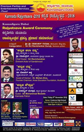 ದುಬೈ: ಕನ್ನಡಿಗರು ದುಬೈ ಇವರ ಆಶ್ರಯದಲ್ಲಿ ಕರ್ನಾಟಕ ರಾಜ್ಯೋತ್ಸವ-2018 ನವಂಬರ್ 9ರಂದು ದುಬೈಯ ಕ್ರೆಡಿಯನ್ಸ್ ಹೈಸ್ಕೂಲ್ ಸಭಾಂಗಣದಲ್ಲಿ ಸಂಜೆ 4.30 ಕ್ಕೆ ವಿವಿಧ ಸಾಂಸ್ಕೃತಿಕ ಕಾರ್ಯಕ್ರಮಗಳೊಂದಿಗೆ ವಿಜ್ರಂಬಣೆಯಿಂದ ಜರಲಿದೆ.