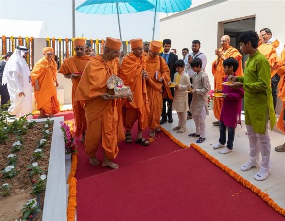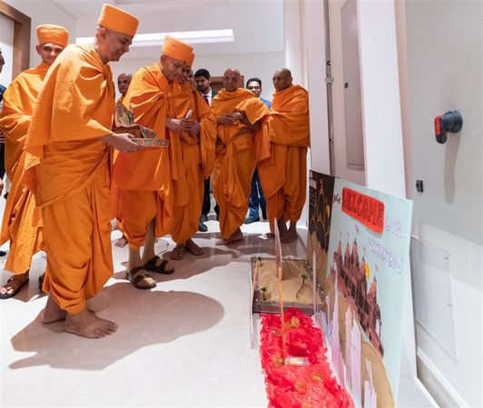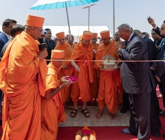 ಅಬುಧಾಬಿಯ ದುಬೈ-ಅಬುಧಾಬಿ ಹೆದ್ದಾರಿಯ ಪಕ್ಕದಲ್ಲಿ ಅಬು ಮುರೈಖಾ ಎಂಬಲ್ಲಿ ಸಂಪೂರ್ಣ ಹಿಂದೂ ಸಾಂಪ್ರದಾಯಿಕ ಶೈಲಿಯಲ್ಲಿ ನಿರ್ಮಾಣವಾಗುತ್ತಿರುವ ದೇವಾಲಯಕ್ಕೆ ಶ್ರೀ ಮಹಂತ್ ಸ್ವಾಮಿ ಮಹಾರಾಜ್ ಅವರು ಏಪ್ರಿಲ್ 20 ರಂದು ಶಂಕು ಸ್ಥಾಪನೆ ನೆರವೇರಿಸಲಿದ್ದಾರೆ.