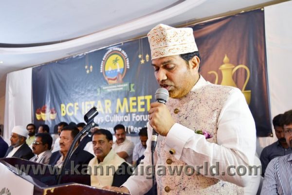ಕುರಾನಿನ ಆಯತ್ತನ್ನು ಉಲ್ಲೇಖಿಸುತ್ತಾ ನಿಸ್ವಾರ್ಥ ಮನಸ್ಸಿನ ಸಮಾಜ ಸೇವೆಯನ್ನು ಮಾಡುವವರನ್ನು ಖಂಡಿತವಾಗಿ ಅಲ್ಲಹು ಅನುಗ್ರಹಿಸುತ್ತಾನೆ, ಒಂದು ಸಣ್ಣ ಒಳ್ಳೆಯ ಕಾರ್ಯ ಒಂದು ದೊಡ್ಡ ಅನುಗ್ರಹವಾಗಿ ನಮಗೆ ಒದಗುತ್ತದೆ ಎಂದರು. ಕಾರ್ಯಕ್ರಮದಲ್ಲಿ ಉಪಸ್ಥಿತರಿದ್ದ ಎಲ್ಲ ಕನ್ನಡ ಪರ ಸಂಘಟನೆಗಳ ಪ್ರತಿನಿಧಿಗಳಿಗೆ ಹಾಗೂ ಈ ಕಾರ್ಯಕ್ರಮಕ್ಕೆ ಸಹಕರಿಸಿ ಇದೊಂದು ಅತ್ಯಂತ ಯಶಸ್ವೀ ಕಾರ್ಯಕ್ರಮವಾಗಿ ಜರುಗಲಿಕ್ಕೆ ಕಾರಣರಾದ BCF ನ ಎಲ್ಲ ಪದಾಧಿಕಾರಿಗಳಿಗೆ ಹಾಗೂ ಇಫ್ತಾರ್ ಕಮಿಟಿಯ ಎಲ್ಲ ಸದಸ್ಯರಿಗೆ ಧನ್ಯವಾದ ಸಮರ್ಪಿಸಿದರು.