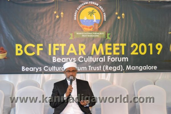 BCF ಸ್ಕಾಲರ್ಷಿಪ್ ಕಮಿಟಿ ಹಾಗೂ BCF ಉಪಾಧ್ಯಕ್ಷರಾದ ಜನಾಬ್ M.E.ಮೂಳೂರ್ ತಮ್ಮ ಭಾಷಣದಲ್ಲಿ BCF ಇಫ್ತಾರ್ ಕೂಟದಲ್ಲಿ ಸೇರಿರುವ ಎಲ್ಲ ಕನ್ನಡಿಗರು, ವಿವಿಧ ಜಾತಿ, ಪಂಗಡಕ್ಕೆ ಸೇರಿದ ಕನ್ನಡಿಗರಾಗಿದ್ದು ಈ BCF ಇಫ್ತಾರ್ ಕೂಟವು ನಮ್ಮ ಭಾರತದ, ವಿಶೇಷವಾಗಿ ನಮ್ಮ ಕರ್ನಾಟಕದ ಸಹೋದರತೆ, ಸಮಾನತೆ ಯನ್ನು ಸಾರುವ ವಿವಿಧತೆಯಲ್ಲಿ ಏಕತೆಯ ಸಂದೇಶಕ್ಕೆ ಸಾಕ್ಷಿಯಾಗಿದೆ ಎಂದರು. ಈ ಜಾತ್ಯಾತೀತ ಐಕ್ಯತೆಯೇ ಭಾರತದ ಶಕ್ತಿಯಾಗಿದ್ದು BCF ಯಾವತ್ತೂ ಈ ಸೌಹಾರ್ದತೆಯನ್ನು ಉತ್ತೇಜಿಸುವ ಸಂಸ್ಥೆಯಾಗಿದೆ ಎಂದರು. BCF ನ ಪರಿಚಯವನ್ನು ಸ್ಟೂಲವಾಗಿ ಮಾಡುತ್ತಾ, ವಿದ್ಯೆಯನ್ನು ಉತ್ತೇಜಿಸೋದರ ಮೂಲಕ ಸಮಾಜದ ಉನ್ನತಿಯನ್ನು ಸಾಧಿಸೋದು ಹಾಗೂ ತಮ್ಮ ಸ್ವಂತಕ್ಕೆ, ತಮ್ಮ ಕುಟುಂಬಕ್ಕೆ, ತಮ್ಮ ಸಮಾಜಕ್ಕೆ ಹಾಗೂ ತನ್ನ ತಾಯ್ನಾಡಿಗೆ ಯಾವತ್ತ್ತು ಉಪಕಾರವಾಗ ಬಲ್ಲ ಆರೋಗ್ಯ ವಂತ, ವಿದ್ಯಾವಂತ ಭವಿಷ್ಯ ಮುಖೀ ಸಮಾಜದ ನಿರ್ಮಾಣಕ್ಕೆ ನೆರವಾಗೋದು BCF ಇದರ ಮುಖ್ಯ ಧ್ಯೇಯ ಎಂದರು. ತಮ್ಮೆಲ್ಲರ ಸಹಕಾರದಿಂದ ಕಳೆದ ಹಲವಾರು ವರ್ಷಗಳಿಂದ ಕರ್ನಾಟಕದ ಎಲ್ಲ ಜಾತಿ ಪಂಗಡಕ್ಕೆ ಸೇರಿದ ಬಡ ವಿದ್ಯಾರ್ಥಿಗಳಿಗೆ ಪ್ರತೀ ವರ್ಷ ಸುಮಾರು 600 ರಿಂದ 700 ರಷ್ಟು ಮಕ್ಕಳಿಗೆ PUC ಯಿಂದ ಹಿಡಿದು ಸ್ನಾತಕೋತ್ತರ ಪದವಿ ವರೆಗೆ ವಿವಿಧ ಕ್ಷೆತ್ರಗಳಲ್ಲಿ ವಿದ್ಯಾರ್ಥಿ ವೇತನ ನೀಡುತ್ತಾ ಬಂದಿದ್ದುಇದು ವರೆಗೆ BCF ಸ್ಕಾಲರ್ಷಿಪ್ ಸಹಕರಿಸಿದ ಎಲ್ಲರಿಗೂ ಧನ್ಯವಾದ ಸಮರ್ಪಿಸುತ್ತಾ ಈ ಸಲ ಇನ್ನೂ ಹೆಚ್ಚಿನ ಮಟ್ಟದಲ್ಲಿ ಸಹಕರಿಸುವಂತೆ ವಿನಂತಿಸಿದರು.