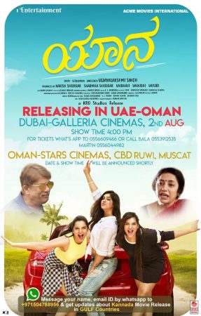 ದುಬೈ: ಕರ್ನಾಟಕದಾದ್ಯಂತ ಸಿನಿರಸಿಕರ ಮನಗೆದ್ದ, ಯಶಸ್ವಿ ಪ್ರದರ್ಶನ ಕಾಣುತ್ತಿರುವ ACME ಮೂವೀಸ್ ಇಂಟರ್ನ್ಯಾಷನಲ್ ಬ್ಯಾನರಿನಡಿಯಲ್ಲಿ ಮಂಗಳೂರು ಮೂಲದ ದುಬೈಯ ಹೆಸರಾಂತ ಉದ್ಯಮಿ, ನಿರ್ಮಾಪಕರಾಗಿರುವ ಹರೀಶ್ ಶೇರಿಗಾರ್ ಮತ್ತು ಶರ್ಮಿಳಾ ಶೇರಿಗಾರ್ ಹಾಗು ‘ಐ’ ಎಂಟರ್ಟೈನ್ಮೆಂಟ್’ನ ವೈಭವಿ, ವೈನಿಧಿ ಮತ್ತು ವೈಸಿರಿ ನಿರ್ಮಿಸಿರುವ “ಯಾನ” ಕನ್ನಡ ಸಿನೆಮಾ ಆಗಸ್ಟ್ 2 ರಂದು ಕನಸಿನ ನಗರಿ ದುಬೈಯಲ್ಲಿ ಬಿಡುಗಡೆಯಾಗಲಿದೆ.