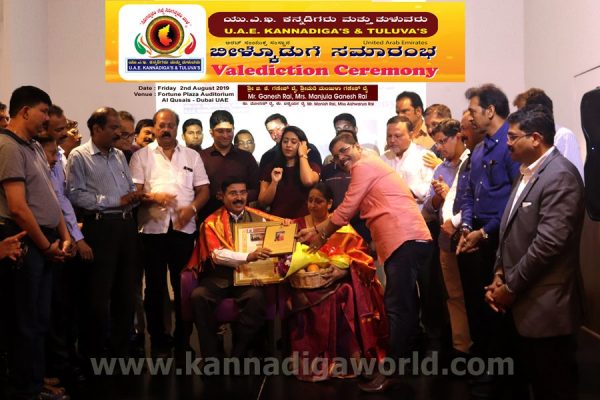 ಕ್ರಿಯಾತ್ಮಕ ಕಲಾನಿರ್ದೇಶಕ ಶ್ರೀ ಬಿ. ಕೆ. ಗಣೇಶ್ ರೈಯವರಿಗೆ ಯು.ಎ.ಇ. ಕನ್ನಡಿಗರು-ತುಳುವರಿಂದ ಹೃದಯಸ್ಪರ್ಶಿ ಬೀಳ್ಕೊಡುಗೆ