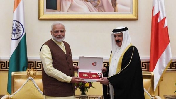 ಬಹರೇನ್‌ ದೊರೆ ಹಮದ್‌ ಬಿನ್‌ ಇಸಾ ಬಿನ್‌ ಸಲ್ಮಾನ್‌ ಅಲ್‌ ಖಲೀಫಾ ಅವರು ಪ್ರಧಾನಿ ಮೋದಿಗೆ ಪ್ರಶಸ್ತಿ ಪ್ರದಾನ ಮಾಡಿ ಗೌರವಿಸಿದರು.