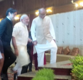 ಸ್ವತಃ ದಿಗ್ವಿಜಯ್ ಸಿಂಗ್ ಮತ್ತು ಮದುಮಗ ಜಯವರ್ಧನ್ ಅವರೇ ಮುಂದೆ ಬಂದು ಮೋದಿಯವರನ್ನು ಆದರದಿಂದ ಬರಮಾಡಿಕೊಂಡು ಅವರ ಕೈ ಹಿಡಿದುಕೊಂಡು ಮದುವೆ ಮಂಟಪಕ್ಕೆ ಕರೆದೊಯ್ದರು.ವಧು ಮೋದಿಯವರ ಕಾಲಿಗೆರಗಲು ಬಗ್ಗಿದಾಗ ಮೋದಿ ಅವರನ್ನು ತಡೆದರು.