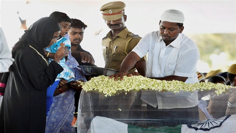 ರಾಮೇಶ್ವರಂ ತಲುಪಿದ ಕಲಾಂ ಪಾರ್ಥಿವ ಶರೀರ, ಮುಗಿಲು ಮುಟ್ಟಿದ ಸಂಬಂಧಿಕರ ಆಕ್ರಂದನ