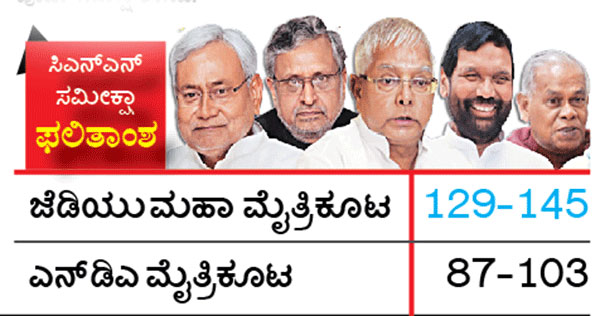 ಬಿಹಾರ: ಸಿಎನ್‌ಎನ್-ಐಬಿಎನ್ ಸಮೀಕ್ಷೆ; ಮಹಾಮೈತ್ರಿಗೆ ಸ್ಪಷ್ಟ ಬಹುಮತ