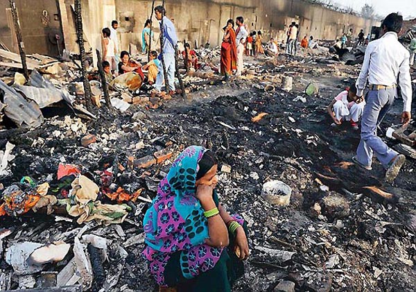 ಮಂಗೋಲ್ಪುರಿ ಪ್ರದೇಶದಲ್ಲಿ ಇಂದು ಬೆಳಗ್ಗೆ ಭಾರಿ ಬೆಂಕಿ ಅವಘಡ ಸಂಭವಿಸಿದ ಪರಿಣಾಮ ಕೊಳಗೇರಿಯ ಗುಡಿಸಲುಗಳು ಸುಟ್ಟಿ ಹೋಗಿದ್ದು ದಿನನಿತ್ಯದ ವಸ್ತುಗಳಿಗೂ ಜನರು ಪರದಾಡುವಂತಾಗಿದೆ. ಕೊಳಚೆ ಪ್ರದೇಶದಲ್ಲಿ ಸಂಭವಿಸಿದ ಈ ಬೆಂಕಿ ಅನಾಹುತದಿಂದ ಮಹಿಳೆಯರು ಮಕ್ಕಳು ಬೀದಿಪಾಲಾಗಿದ್ದು ಘಟನೆಯಲ್ಲಿ ಯಾವುದೇ ಪ್ರಾಣ ಹಾನಿ ಸಂಭವಿಸಿರುವ ಬಗ್ಗೆ ವರದಿಯಾಗಿಲ್ಲ. ಬೆಂಕಿ ಅವಘಡದಿಂದ ನಮ್ಮ ಎಲ್ಲ ವಾಸಸ್ಥಾನಗಳು ಹಾಗೂ ಸಾಮಗ್ರಿಗಳು ಸುಟ್ಟಿವೆ. ಈಗ ನಮ್ಮ ಬಳಿ ಧರಿಸಿರುವ ಬಟ್ಟೆಗಳು ಮಾತ್ರ ಇವೆ ಎಂದು ಕೊಳಚೆ ಪ್ರದೇಶದ ನಿವಾಸಿಯೊಬ್ಬರು ತಿಳಿಸಿದ್ದಾರೆ. ಇಂದು ನಸುಕಿನಲ್ಲಿ ಸಂಭವಿಸಿದ ಅಗ್ನಿ ಆಕಸ್ಮಿಕಕ್ಕೆ ಇದುವರೆಗೂ ಕಾರಣವೆನೆಂದು ತಿಳಿದು ಬಂದಿಲ್ಲ.ಬೆಳಂ ಬೆಳಗ್ಗೆ ಇನ್ನೂ ಕಣ್ಣು ಬಿಡದ ಸಮಯದಲ್ಲಿ ದಿಡೀರ್ ಬೆಂಕಿ ಕಾಣಿಸಿಕೊಂಡು ಪರಿಣಾಮ ನಾವು ಮಕ್ಕಳು ಮರಿ. ಮಹಿಳೆಯರನ್ನು ಮನೆ ಯಿಂದ ಹೊರಗೆ ಎಳೆದುತಂದು ರಕ್ಷಿಸಿದ್ದೇವೆ ಆದರೆ ಇದೀಗ ಜೀವನ ನಡೆಸುವುದು ಹೇಗೆ ಎಂಬ ಕೊರುಗು ಕಾಡುತ್ತಿದೆ ಎಂದು ನಿರಾಶ್ರಿತರು ತಮ್ಮ ಅಳಲು ತೊಡಿಕೊಂಡಿದ್ದಾರೆ. 400 ಗುಡಿಸಲುಗಳು ಹೊತ್ತಿ ಉರಿಯುತ್ತಿದ್ದು ಮಧ್ಯಹ್ನಾದವರೆಗೂ ಬೆಂಕಿ ನಂದಿಸಲು ಅಗ್ನಿ ಶಾಮಕ ದಳದ ಸಿಬ್ಬಂದಿ ಹರಸಾಹಸಪಟ್ಟಿದ್ದಾರೆ ಎನ್ನಲಾಗಿದೆ.