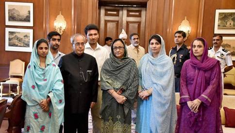 ಆಕಸ್ಮಿಕವಾಗಿ ಪಾಕಿಸ್ತಾನಕ್ಕೆ ಹೋಗಿದ್ದ ಭಾರತೀಯ ಮೂಲದ ಗೀತಾ ನಿನ್ನೆಯಷ್ಟೇ ತವರು ಭಾರತಕ್ಕೆ ಬಂದಿಳಿದಿದ್ದಳು. ಇದೀಗ ಗೀತಾ ರಾಷ್ಟ್ರಪತಿ ಪ್ರಣಬ್ ಮುಖರ್ಜಿಯವರನ್ನು ಭೇಟಿ ಮಾಡಿದ್ದಾಳೆ. ಗೀತಾ ಭೇಟಿಯಾಗುತ್ತಿದ್ದಂತೆ ಆಕೆಗೆ ಆಶೀರ್ವಾದ ಮಾಡಿದ ಪ್ರಣಬ್ ಮುಖರ್ಜಿಯವರು, ನೀನು ಭಾರತ ಮತ್ತು ಪಾಕಿಸ್ತಾನ ಎರಡೂ ದೇಶದ ಮಗಳು. ಎರಡೂ ದೇಶದ ಏಕತೆಯ ಸಂಕೇತ. ನಿನ್ನೆ ಕೂಗು ಹಾಗೂ ಮೊರೆಯನ್ನು ದೇವರು ಕೇಳಿಸಿಕೊಂಡಿದ್ದಾರೆ ಎಂದು ಹೇಳಿದ್ದಾರೆ.