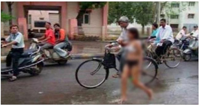 ಠಾಣೆ ಎದುರು ನಡೆಯುತ್ತಿದ್ದ ಈ ಪ್ರಸಂಗ ಕಂಡ ಪೊಲೀಸರು ಕೂಡಲೇ ಹೊರಬಂದು ಯುವತಿಗೆ ಬಟ್ಟೆ ತೊಡಿಸಿದ್ದಾರೆ.