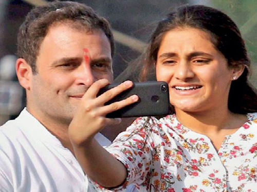 ಅಹಮದಾಬಾದ್: ರಾಜಕೀಯ, ಸಿನಿಮಾ ಹಾಗೂ ಕ್ರಿಕೆಟ್ ಸ್ಟಾರ್ಸ್ ಸಿಕ್ಕಿದರೆ ಯುವ ಸಮೂಹ ಸೆಲ್ಫಿಗಾಗಿ ಮುಗಿ ಬೀಳುತ್ತಾರೆ. ಇದಕ್ಕೆ ಪೂರಕವೆಂಬಂತೆ ಹತ್ತನೇ ತರಗತಿ ವಿದ್ಯಾರ್ಥಿನಿ ಮಾಂತಾಶ ಎಂಬಾಕೆ ಕೂಡಾ ಕಾಂಗ್ರೆಸ್ ಯುವನಾಯಕ ರಾಹುಲ್ ಗಾಂಧಿಯೊಂದಿಗೆ ಸೆಲ್ಫಿ ತೆಗದು ಭಾರೀ ವೈರಲ್ ಆಗಿದ್ದಾರೆ.