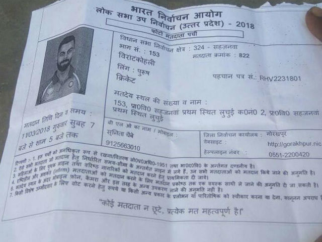 ಲಖನೌ: ಮೂಲತಃ ದೆಹಲಿ ಮೂಲದ ಟೀಂ ಇಂಡಿಯಾದ ನಾಯಕ ವಿರಾಟ್ ಕೊಹ್ಲಿ ಅವರು ದಿಢೀರೆಂದು ಉತ್ತರಪ್ರದೇಶದ ಗೋರಖಪುರದ ಸಹಜನ್ವಾ ವಿಧಾನಸಭಾ ಕ್ಷೇತ್ರದ ಮತದಾರನಾಗಿದ್ದಾರೆ.