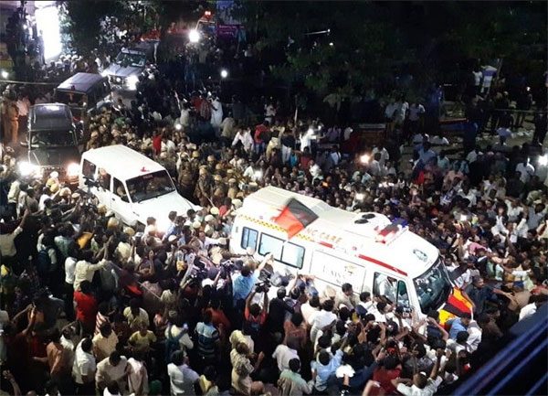 ಇದಕ್ಕೂ ಮುನ್ನ ಮರೀನಾ ಬೀಚ್ನಲ್ಲಿಯೇ ಅಂತ್ಯಕ್ರಿಯೆಗೆ ಅವಕಾಶ ಕಲ್ಪಿಸದ ತಮಿಳುನಾಡು ಸರಕಾರದ ವಿರುದ್ಧ ಡಿಎಂಕೆ ಕಾರ್ಯಕರ್ತರು ಪ್ರತಿಭಟನೆ ನಡೆಸಿದರು.