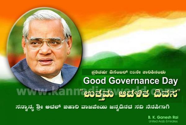 ಅಟಲ್ ಬಿಹಾರಿ ವಾಜಪೇಯಿ ಜನ್ಮದಿನ ಡಿಸೆಂಬರ್ 25. ಈ ದಿನವನ್ನು “ಉತ್ತಮ ಆಡಳಿತ ದಿವಸ” “ಗುಡ್ ಗವರ್ನೆನ್ಸ್ ಡೇ” ಎಂದು ಭಾರತಾದ್ಯಂತ 2014 ರಿಂದ ಆಚರಿಸಲಾಗುತಿದೆ.