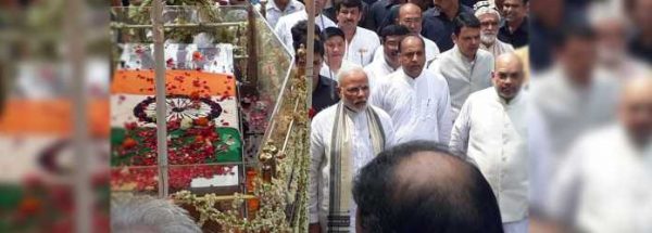 ಬಿಜೆಪಿ ಕೇಂದ್ರ ಕಚೇರಿಯಿಂದ ಹೊರಟ ಪಾರ್ಥಿವ ಶರೀರದ ಅಂತಿಮ ಯಾತ್ರೆಯಲ್ಲಿ ಲಕ್ಷಾಂತರ ಜನರ ಮಧ್ಯೆಯೂ ಪ್ರಧಾನಿ ನರೇಂದ್ರಮೋದಿ ತನ್ನ ನೆಚ್ಚಿನ ಗುರುವಿನ ಅಂತಿಮ ಯಾತ್ರೆಯಲ್ಲಿ ನಡೆದು ಸಾಗುವ ಮೂಲಕ ಗುರು- ಶಿಷ್ಯರ ನಡುವಿನ ಸಂಬಂಧವನ್ನು ಜಗತ್ತಿಗೆ ಸಾರಿ ಹೇಳಿದರು.