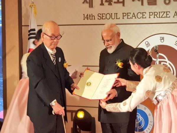 ರಾಷ್ಟ್ರೀಯ ಮತ್ತು ಅಂತಾರಾಷ್ಟ್ರೀಯ ಕೊಡುಗೆಗಾಗಿ ಪ್ರಧಾನಿ ನರೇಂದ್ರ ಮೋದಿ ಅವರಿಗೆ “ಸಿಯೋಲ್ ಶಾಂತಿ ಪ್ರಶಸ್ತಿ ಸಾಂಸ್ಕೃತಿಕ ಫೌಂಡೇಶನ್ ” ಆಯೋಜಿಸಿದ್ದ ಸಮಾರಂಭದಲ್ಲಿ 14ನೇ ಶಾಂತಿ ಪುರಸ್ಕಾರವನ್ನು ಪ್ರದಾನ ಮಾಡಲಾಯಿತು.