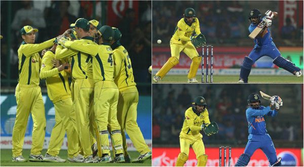 ಆಸೀಸ್ ನೀಡಿದ್ದ 273 ರನ್ ಗುರಿ ಬೆನ್ನತ್ತಿದ ಟೀಂ ಇಂಡಿಯಾ ಪರ ರೋಹಿತ್ ಶರ್ಮಾ ಅರ್ಧ ಶತಕ ಸಿಡಿಸಿದ್ದು ಹೊರತು ಪಡಿಸಿದರೆ, ಕೊಹ್ಲಿ 20 ರನ್, ಧವನ್ 12 ರನ್, ಪಂತ್ ಹಾಗೂ ವಿಜಯ್ ಶಂಕರ್ ತಲಾ 16 ರನ್ ಗಳಿಸಿದರೆ ಜಡೇಜಾ ಶೂನ್ಯ ಸುತ್ತಿ ನಿರಾಸೆ ಮೂಡಿಸಿದರು. ಈ ಹಂತದಲ್ಲಿ ಟೀಂ ಇಂಡಿಯಾ 28.5 ಓವರ್ ಗಳಲ್ಲಿ 132 ರನ್ ಗಳಿಗೆ 6 ವಿಕೆಟ್ ಕಳೆದು ಕೊಂಡು ಸಂಕಷ್ಟಕ್ಕೆ ಸಿಲುಕಿತ್ತು.
