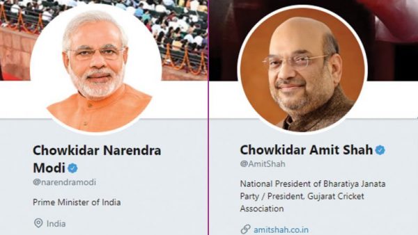 ಬಿಜೆಪಿ ರಾಷ್ಟ್ರೀಯ ಅಧ್ಯಕ್ಷ ಅಮಿತ್ ಶಾ ಕೂಡಾ ನರೇಂದ್ರ ಮೋದಿ ಅವರಂತಯೇ ಚೌರಿದಾರ್ ಅಮಿತ್ ಶಾ ಎಂದು ಹೆಸರು ಮರು ನಾಮಕರಣ ಮಾಡಿಕೊಂಡಿದ್ದಾರೆ.