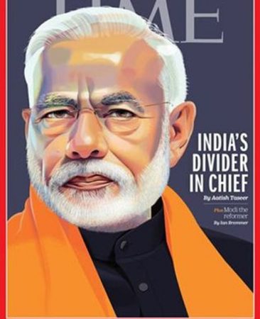 ಟೈಮ್ ನಿಯತಕಾಲಿಕೆ ತನ್ನ ಅಂತಾರಾಷ್ಟ್ರೀಯ ಆವೃತ್ತಿಯ ಮುಖಪುಟದಲ್ಲಿ ಪ್ರಧಾನಿ ನರೇಂದ್ರ ಮೋದಿ ಫೋಟೋ ಪ್ರಕಟಿಸಿದ್ದು, ‘ಇಂಡಿಯಾಸ್ ಡಿವೈಡರ್ ಇನ್ ಚೀಫ್'(ಭಾರತದ ಮುಖ್ಯ ವಿಭಜಕ) ಎಂಬ ಶೀರ್ಷಿಕೆ ನೀಡಿ ವಿವಾದ ಸೃಷ್ಟಿಸಿದೆ.