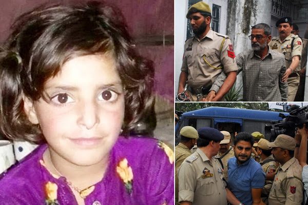 ಜಮ್ಮುವಿನ ಕಥುವಾ ಭಾಗದಿಂದ ಎಂಟು ವರ್ಷದ ಬಾಲಕಿಯನ್ನು ಅಪಹರಿಸಿ, ಸಾಮೂಹಿಕ ಅತ್ಯಾಚಾರ ನಡೆಸಲಾಗಿತ್ತು. ಆಕೆಗೆ ಮಂಪರು ಬರುವಂತೆ ಡ್ರಗ್ ನೀಡಲಾಗಿ, ಹಲವಾರು ಬಾರಿ ಅತ್ಯಾಚಾರ ನಡೆಸಲಾಗಿತ್ತು ಎಂದು ಪೊಲೀಸರು ತಮ್ಮ ಆರೋಪ ಪಟ್ಟಿಯಲ್ಲಿ ತಿಳಿಸಿದ್ದಾರೆ.